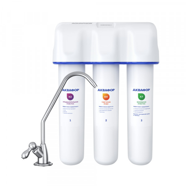 Картриджи последовательно очищают воду от видимых механических примесей и растворенных вредных веществ. Блок предварительной очистки задерживает частицы размером от 5 микрон, второй – умягчает воду, избавляя от хлопьев в чайнике, а третий обеспечивает финишную очистку от частиц до 0,8 микрон (что в 125 раз тоньше человеческого волоса). Карбонблок с Акваленом захватывает и надежно задерживает тяжелые металлы и другие опасные примеси, которые чаще всего встречаются в водопроводной воде.